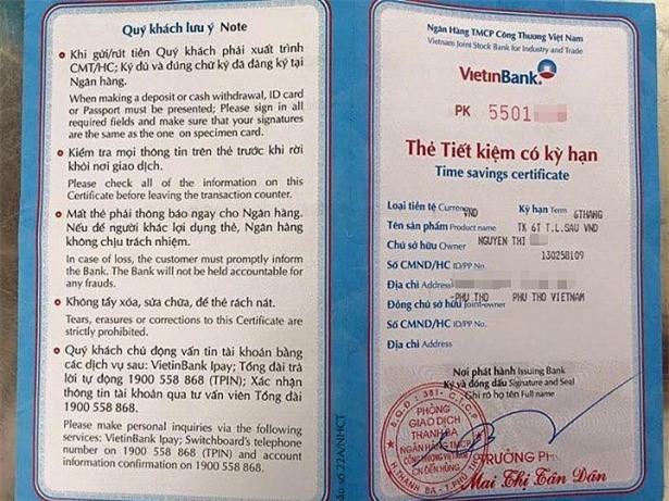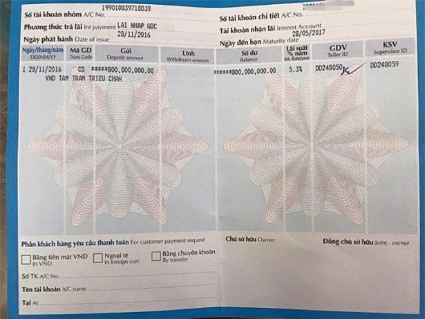 Trên quyển sổ có ghi rõ thông tin của mẹ tôi và ngày phát hành là 28/11/2016, hạn đến 28/5/2017. Tới khi cần tiền để làm ăn mẹ tôi ra ngân hàng để rút tiền. Nhưng khi ra ngân hàng thì nhân viên ở đây cho biết hiện tại trong tài khoản của mẹ tôi chỉ còn 10 triệu, số tiền 790 triệu đồng đã bị rút.