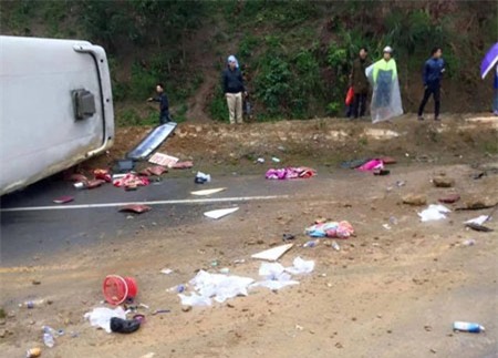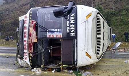 Còn lãnh đạo Phòng 10 (Cục CSGT) phụ trách cao tốc Nội Bài - Lào Cai cho biết, xe lật do tài xế mất lái, đâm vào gờ đường.