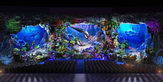 Tại đây, lần đầu tiên du khách có cơ hội thưởng thức công nghệ chiếu phim cực sắc nét cùng hiệu ứng 4D chân thực với phòng chiếu phim khổng lồ lên tới 200 chỗ ngồi. Với 3 màn hình lớn gần như bao trùm toàn bộ khán phòng, cùng hiệu ứng âm thanh hình ảnh, kết hợp với những chuyển động và tương tác trực tiếp, khán giả sẽ có cảm giác đang sống trong thế giới đại dương, cùng tham gia cuộc phiêu lưu với các sinh vật biển và những nàng tiên cá.