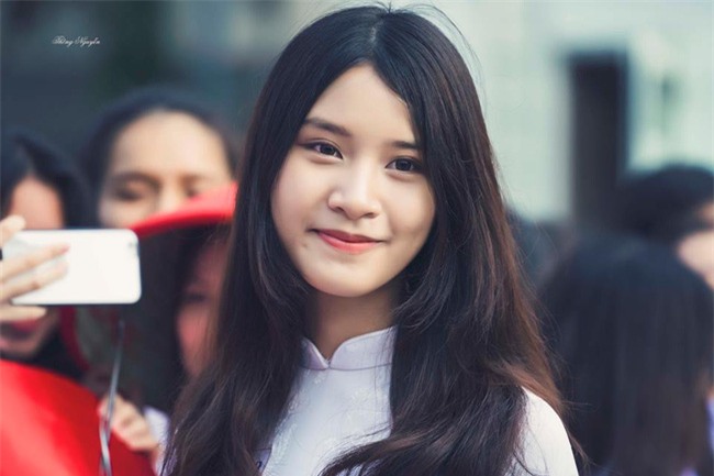 Những hình ảnh về cô bạn này đã được chụp lại từ màn đồng diễn áo dài nằm trong Lễ hội Áo dài lần 4 năm 2017 tại phố đi bộ Nguyễn Huệ vừa qua. Cô bạn là 1 trong số 1000 nữ sinh của trường THPT Trưng Vương (TP.HCM) tham gia màn đồng diễn này.
