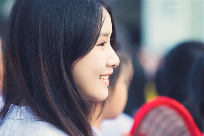 Với mái tóc xoã tự nhiên, gương mặt xinh xắn, nụ cười đáng yêu, cô bạn này trông cực kỳ nổi bật và nhanh chóng thu hút sự chú ý. Ở góc nghiêng, nét dịu dàng và trong sáng của cô nữ sinh khiến mọi người phải mê mẩn.