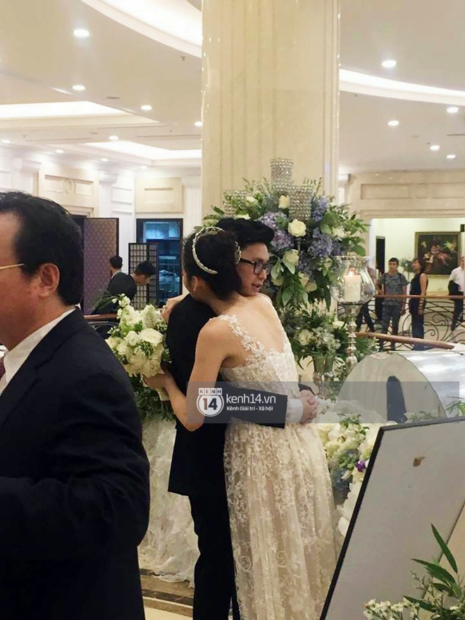 Sau khi được bố dắt lên lễ đường, Tú Anh tay trong tay cùng ông xã cử hành hôn lễ. Người em không giấu được xúc động.