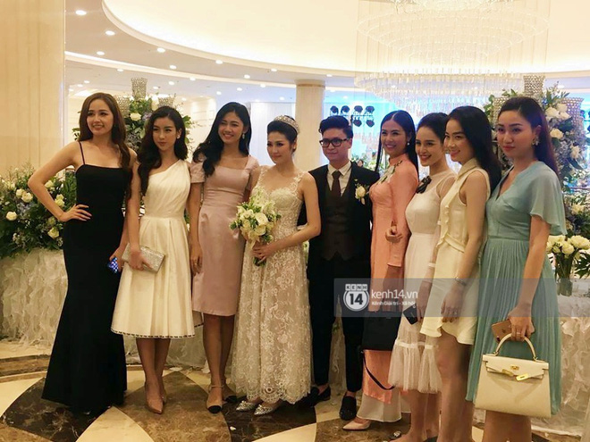Vợ chồng Tú Anh chụp ảnh cùng dàn khách mời là các người đẹp Vbiz như Mai Phương Thuý, Ngọc Hân, Đỗ Mỹ Linh, Hoàng Anh, Trà My,...
