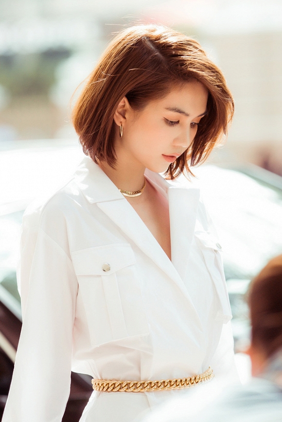 Mới đây, Ngọc Trinh xuất hiện trên phố với những mẫu thiết kế kín đáo, nhã nhặn mà không kém phần sang trọng. Kiểu tóc cắt ngắn, kết hợp cùng trang sức và phụ kiện đắt đỏ càng khiến cô trẻ trung gấp bội.