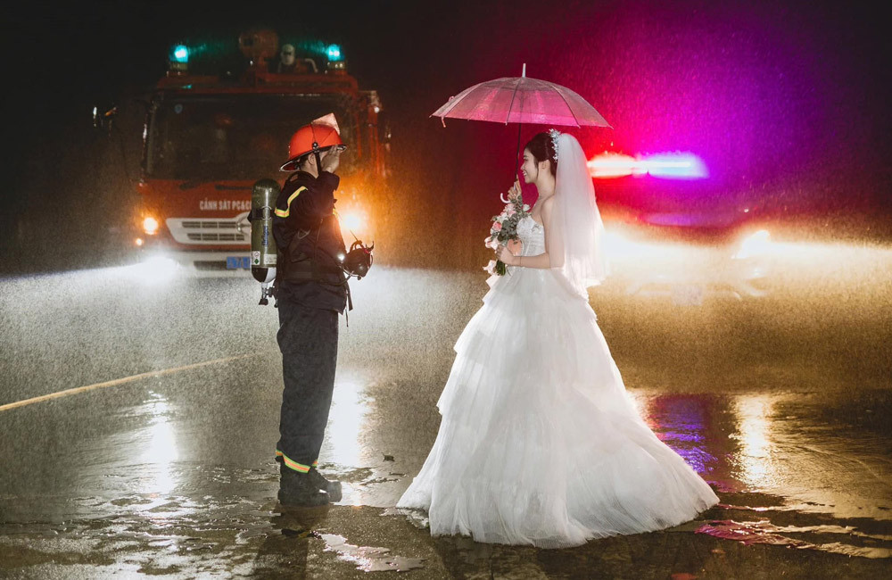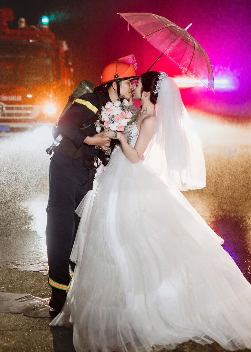 Dân mạng để lại nhiều bình luận thú vị: “Tôi bỗng nhớ đến bộ phim ‘Khói lửa nhân gian’, anh lính cứu hỏa nên duyên cùng cô bác sĩ’”; “Lần đầu thấy "concept" ảnh cưới đẹp và lãng mạn thế này”; “Cô dâu, chú rể có thể ‘khoe’ cả đời với bộ ảnh cưới này”...