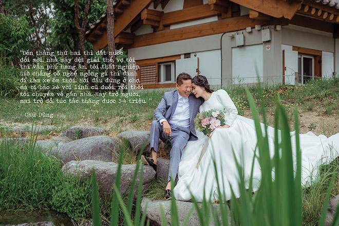 "Ngày xưa thì cưới nhanh lắm, thấy hợp thì cưới thôi, chứ đâu tìm hiểu nhiều như các anh các chị bây giờ. Thời bấy giờ, đúng năm đó là nạn đói, tiền làm cỗ cưới còn chẳng có chứ đừng nói bộ ảnh cưới các cháu ạ. Cưới nhau thì chỉ làm mâm cơm vỏn vẹn, mặc bộ đồ mới rồi thắp hương tổ tiên xin cho chúng con về với nhau thôi. Đêm ngày cưới, còn mượn tạm cái ráp giường của bà chị, trải lên sàn nhà để nằm, chăn cũng chẳng có đâu", chú Dũng rưng rưng nhớ về ngày cưới đáng nhớ.