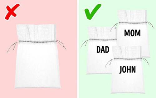 Bạn đã bao giờ gặp phải tình trạng bị thất lạc mất một chiếc tất sau mỗi lần giặt đồ chưa? Để tránh những đồ nhỏ như: tất, nội y "biến mất", bạn nên sắm những chiếc túi nhỏ bằng vải để đựng đồ từng thành viên trong gia đình trước khi cho vào máy giặt.