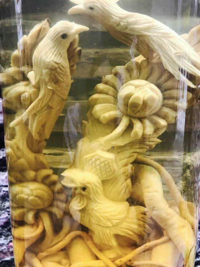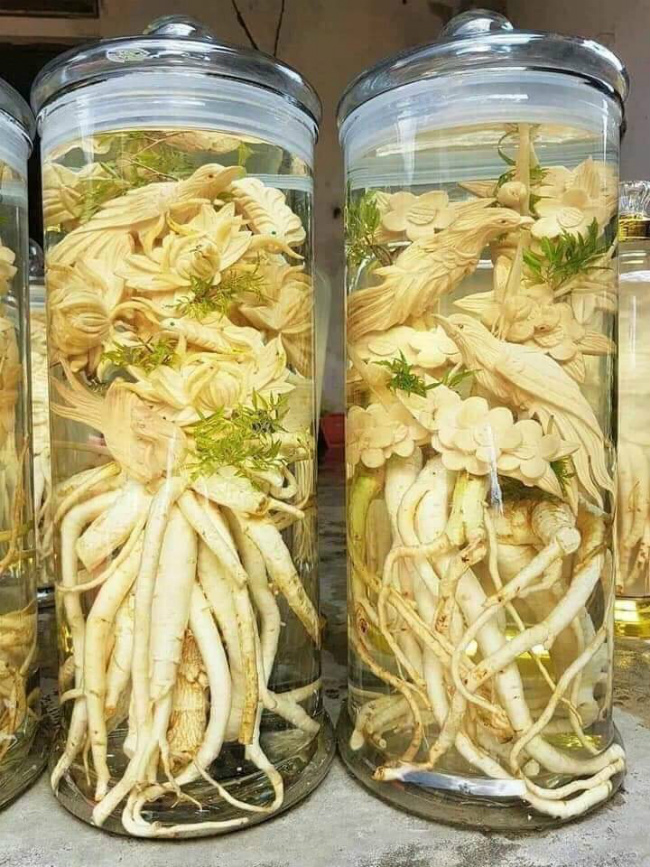 Theo anh Phạm Hiếu – chủ cơ sở bán đinh lăng điêu khắc ngâm rượu 17 năm ở Hà Nội, loại đinh lăng để điêu khắc phải từ 7-8 năm tuổi.