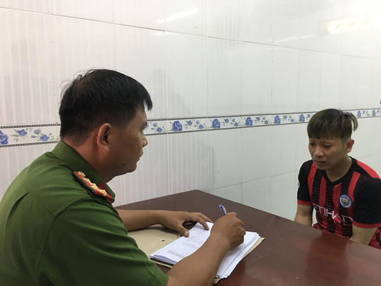 Đối tượng Huỳnh Ngọc Quốc tại cơ quan công an