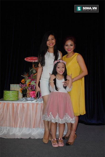 Lê Giang cùng con gái ruột Lê Lộc và bé Mai Chi trong tiệc mừng chiến thắng