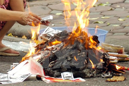 Tôn giáo tín ngưỡng và các quan niệm dần dần được thay đổi, tiền giấy ban đầu không dùng để đốt, mà chủ yếu chôn cùng, treo xung quanh, hoặc rải quanh mộ, nhưng khi đốt tạo ra khói, có cảm giác huyền hoặc hơn, nên rất nhanh sau đó đốt tiền vàng mã được sử dụng phổ biến, từ nghi lễ của vua quan, đến người dân thường. Tục đốt vàng mã đã trở thành một tín ngưỡng trong dân gian.