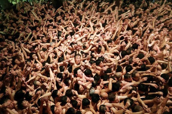 Dưới thời tiết lạnh giá ngày 15-2, hàng ngàn người đã quy tựu tham dự lễ hội khỏa thân thường niên Hadaka Matsuri ở TP Okayama, miền Tây đảo Honshu - Nhật Bản.