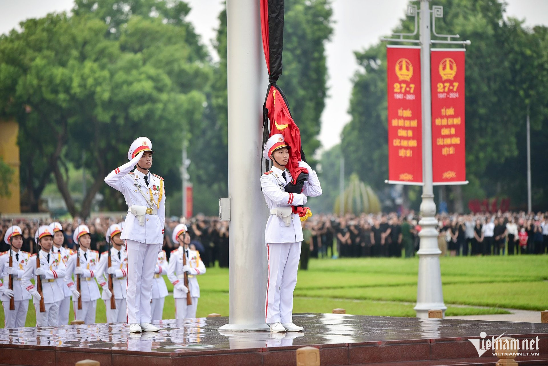 Nghi lễ treo cờ rủ tại Quảng trường Ba Đình. Ảnh: Đinh Tùng