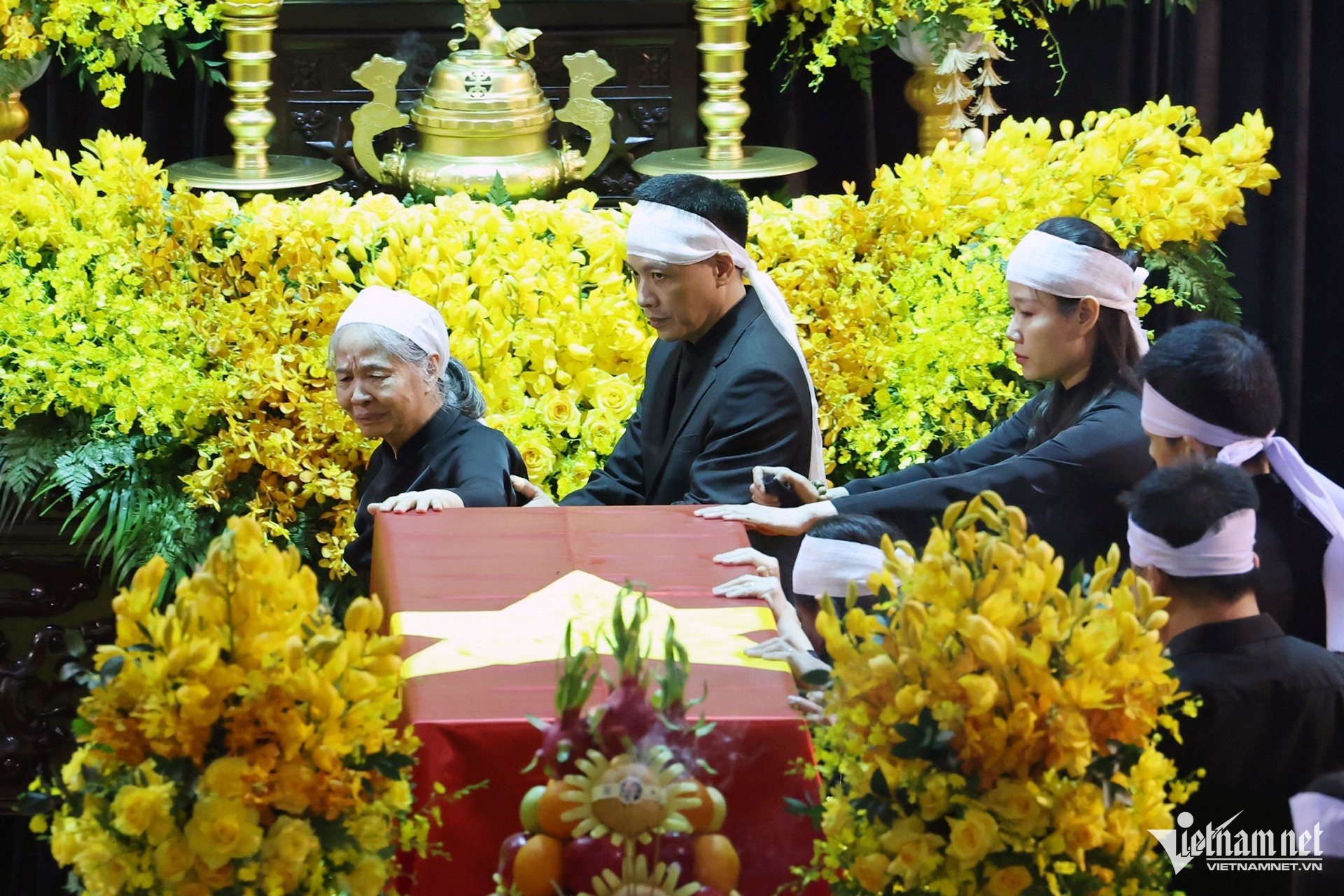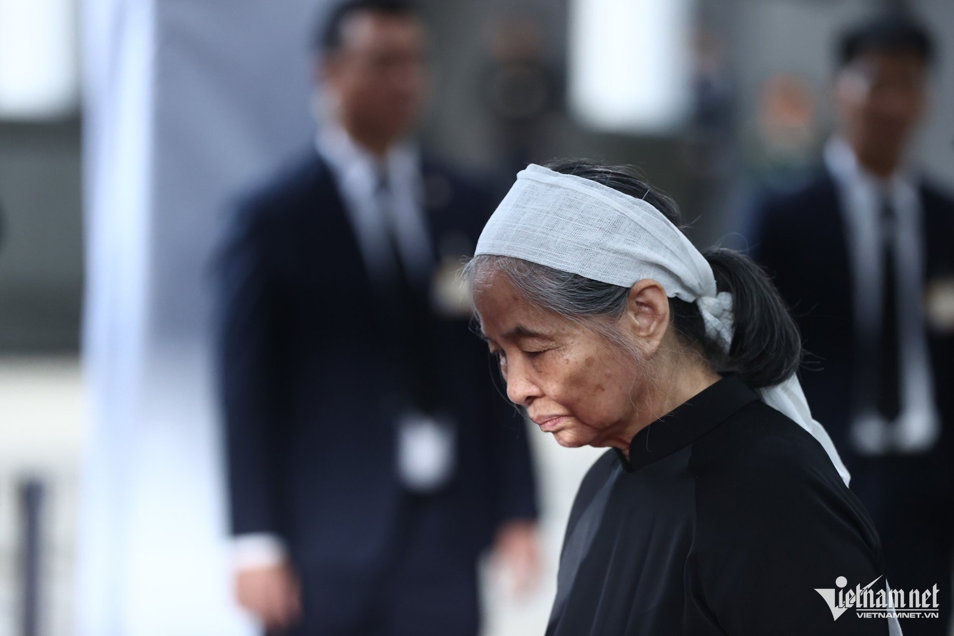Phu nhân Tổng Bí thư, bà Ngô Thị Mận đầu quấn khăn tang trước giờ chuẩn bị lễ Quốc tang