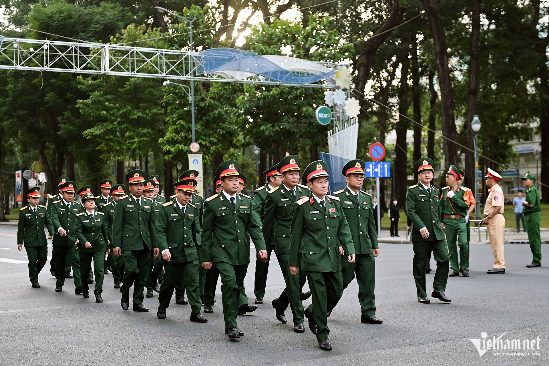 Tại các tuyến phố hướng về khu vực Nhà tang lễ quốc gia, số 5 Trần Thánh Tông, Hà Nội, các lực lượng phục vụ lễ tang có mặt để thực hiện nhiệm vụ như Cảnh vệ, Công an, CSGT... chuẩn bị hỗ trợ đảm bảo trật tự lễ viếng.