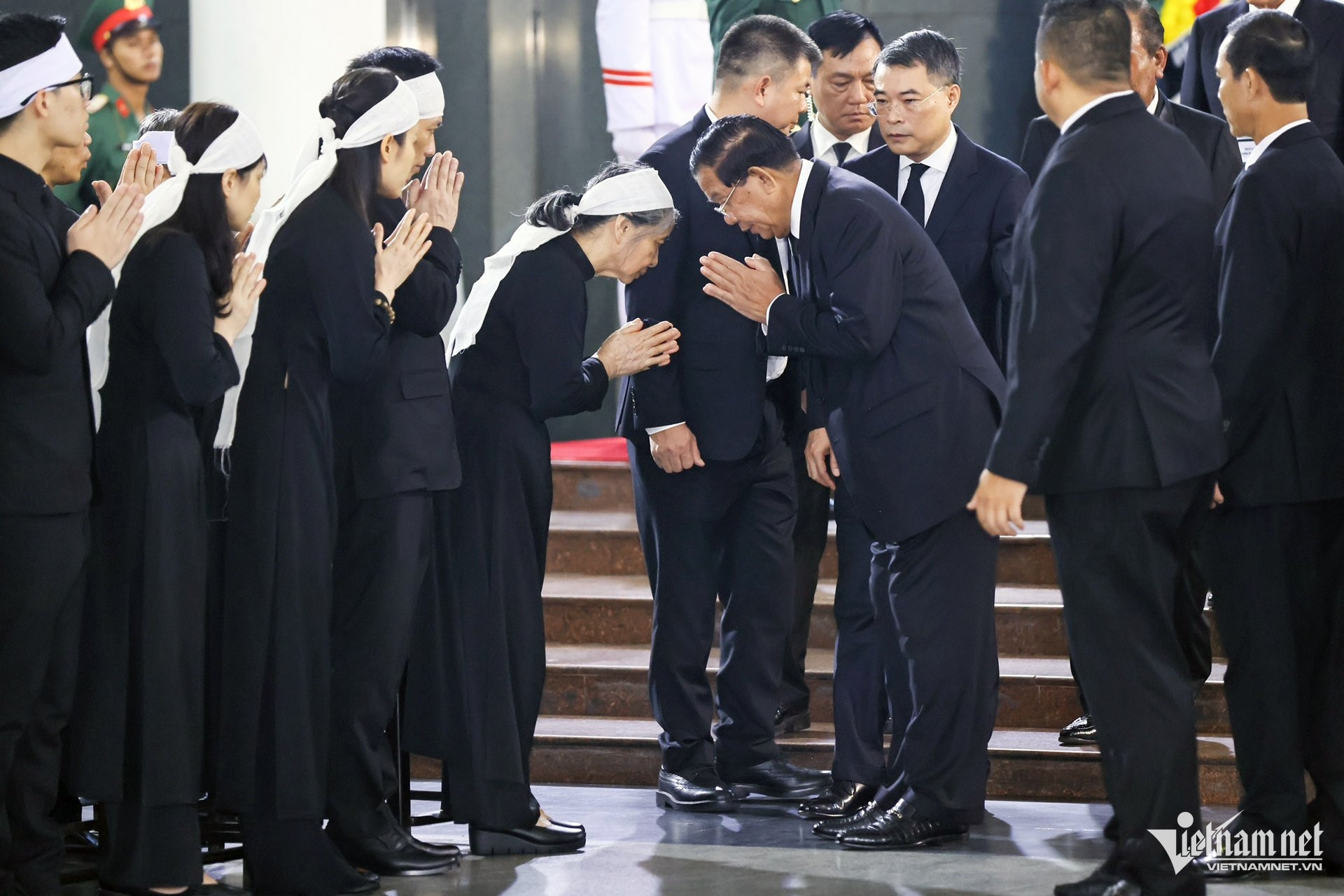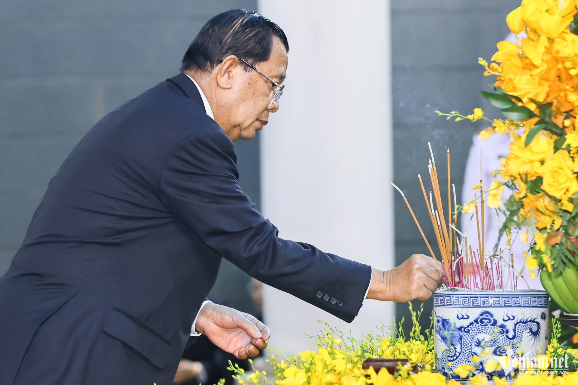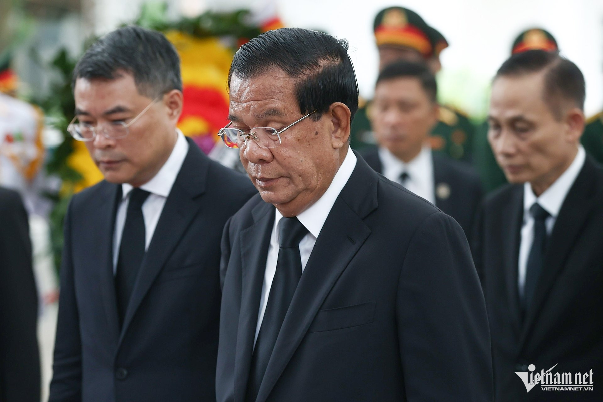 Đoàn Campuchia do Chủ tịch Đảng Nhân dân (CPP), Chủ tịch Thượng viện Campuchia Samdech Techo Hun Sen dẫn đầu vào viếng.