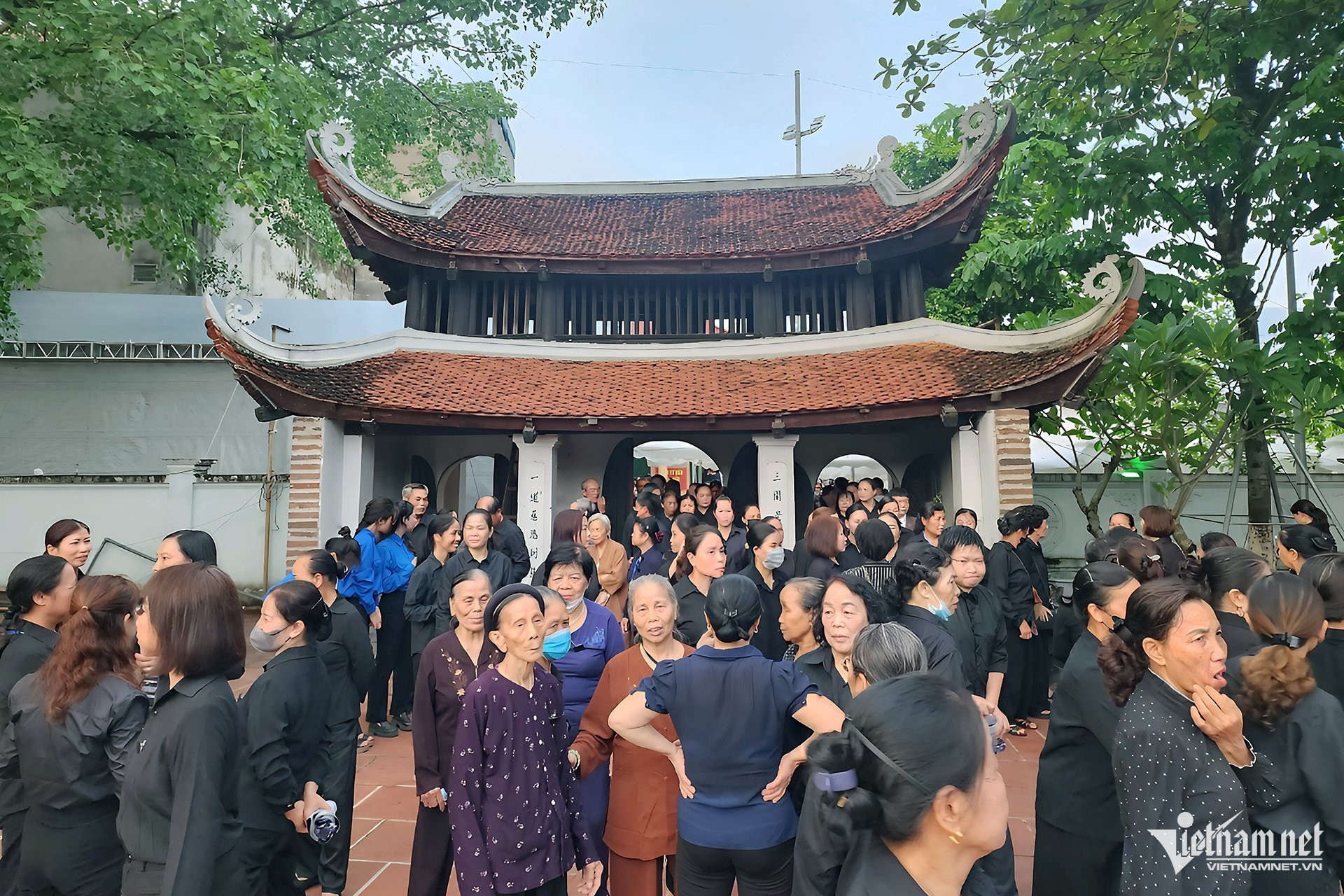 Người dân tập trung tại thôn Lại Đà chờ viếng Tổng Bí thư. Ảnh: Quang Phong