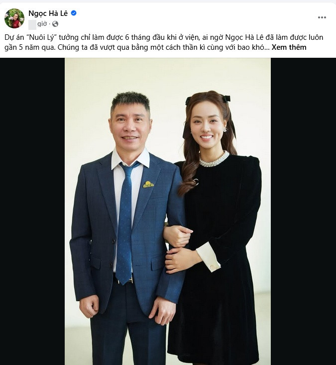 Mới đây, bà xã Công Lý chia sẻ dòng trạng thái mới gây chú ý. Theo đó, người đẹp đăng hình bên NSND Công Lý kèm dòng trạng thái: "Dự án “Nuôi Lý” tưởng chỉ làm được 6 tháng đầu khi ở viện, ai ngờ Ngọc Hà Lê đã làm được luôn gần 5 năm qua. Chúng ta đã vượt qua bằng một cách thần kì cùng với bao khó khăn, sóng gió, tưởng chừng có lúc gục ngã đau đớn… Nhưng cuối cùng, chúng ta vẫn đồng hành với nhau bằng tất cả sự yêu thương, chân thành và cũng không thể thiếu gia đình, người bạn, khán giả luôn dõi theo, cổ vũ, truyền thêm sức mạnh.