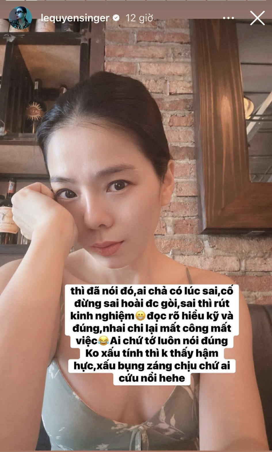 Giữa làn sóng bàn tán của cư dân mạng, mới đây Lệ Quyên tiếp tục lên tiếng đính chính trên trang cá nhân cực gắt. Cô chia sẻ: "Rõ khổ, bài viết rất văn minh mà mọi người dãy đành đạch thế. Thì đã nói rồi đó, ai chả có lúc sai, cố đừng sai hoài là được rồi, sai thì rút kinh nghiệm. Đọc rõ hiểu kĩ và đúng, nhai chi lại mất công việc. Ai chứ tớ luôn nói đúng, không xấu tính thì không thấy hậm hực, xấu bụng ráng chịu chứ ai cứu nổi."