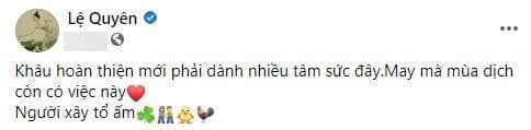 Đáng chú ý, trong một lần khoe cơ ngơi này, nữ ca sĩ sử dụng cụm từ "người xây tổ ấm" và nhiều ký tự đặc biệt, như ẩn ý về cuộc sống lứa đôi trong tương lai gần.