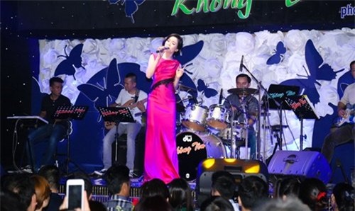 Lệ Quyên hát tại phòng trà của chính mình.