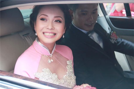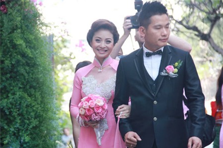 Đây là lần lên xe hoa thứ hai của Hoa hậu châu Á tại Mỹ 2006 sau khi đổ vỡ hôn nhân với nam ca sĩ Quang Dũng. Ở lần kết hôn thứ nhất, cô và nam ca sĩ Còn ta với nồng nàn quen và yêu nhau khi đóng chung bộ phim Những chiếc lá thời gian. Tháng 7/2007, cặp đôi tổ chức đám cưới tại hai nơi: Việt Nam và Califonia, Mỹ.