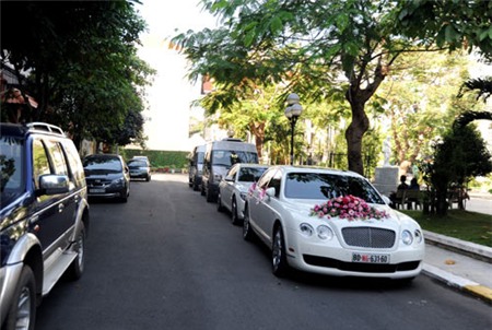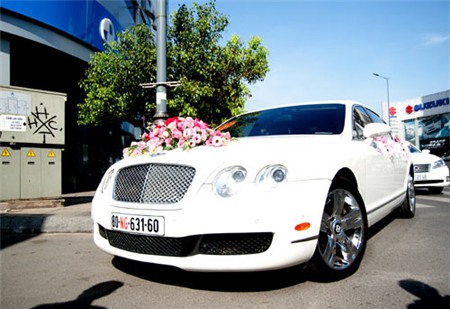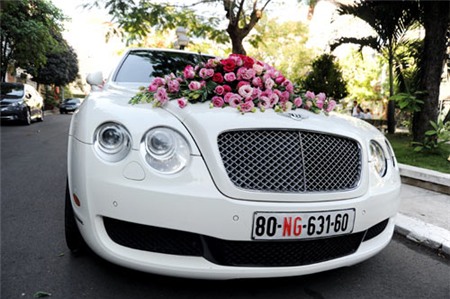 | Siêu xe Bentley chuẩn bị sẵn sàng để lên đường đón dâu. |