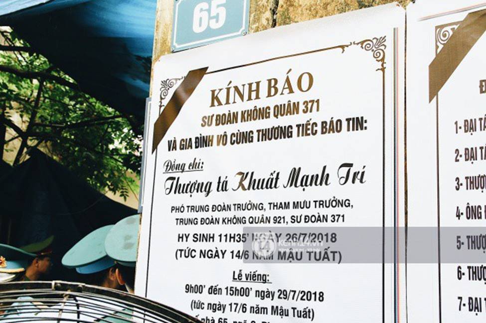Sau khi được hỏa táng tại Đài hóa thân Hoàn Vũ (Văn Điển, Hà Nội), sáng 29/7, hài cốt của Thượng tá Khuất Mạnh Trí được đưa về tới nhà riêng tại phường Lê Lợi (TX Sơn Tây). Anh Trí là một trong 2 phi công hy sinh khi thực hiện bay huấn luyện.