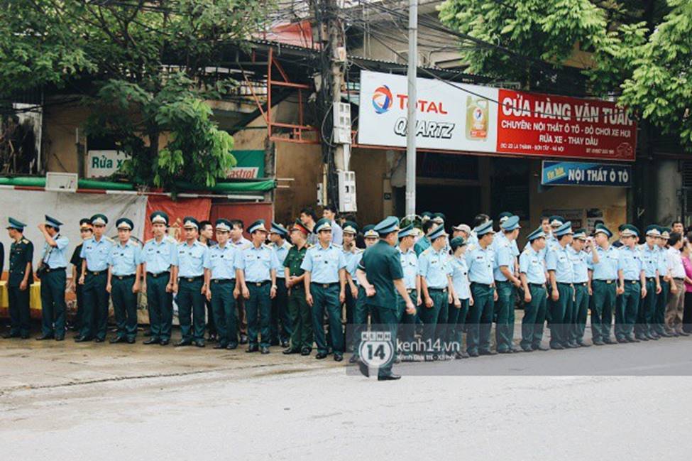 Từ sáng sớm ngày 29/7, hàng trăm chiến sĩ trong các lực lượng đứng trang nghiêm 2 bên đường chờ đoàn xe tang từ nội thành Hà Nội về.