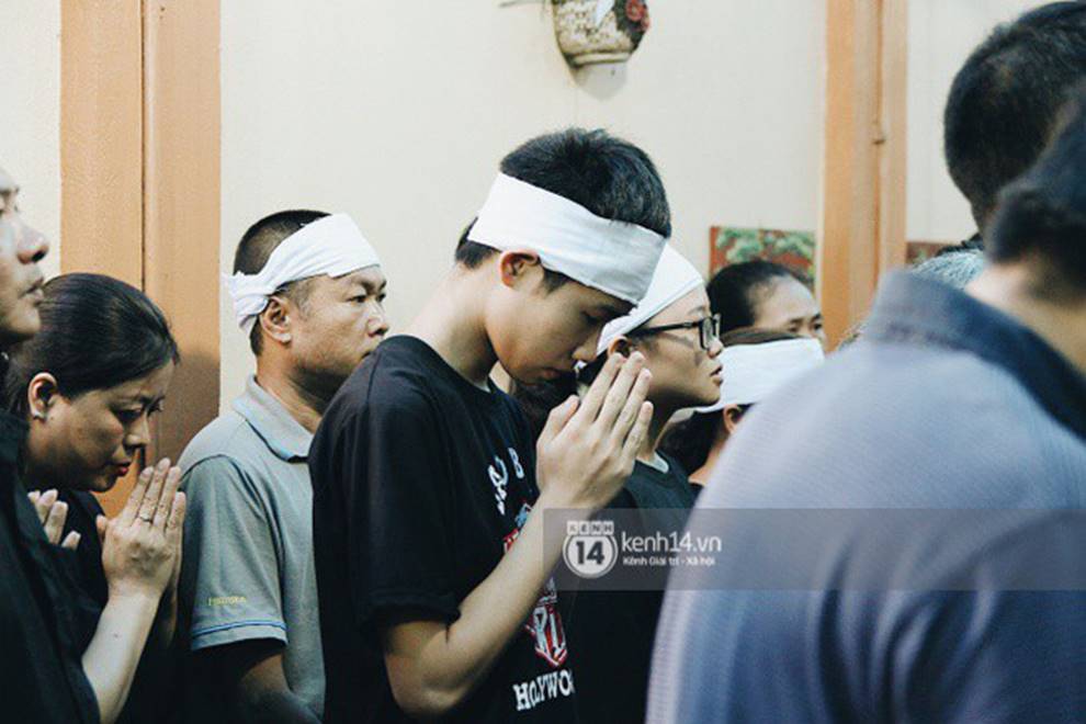 Người thân anh Trí cúi chào dòng người đến viếng cháu mình.