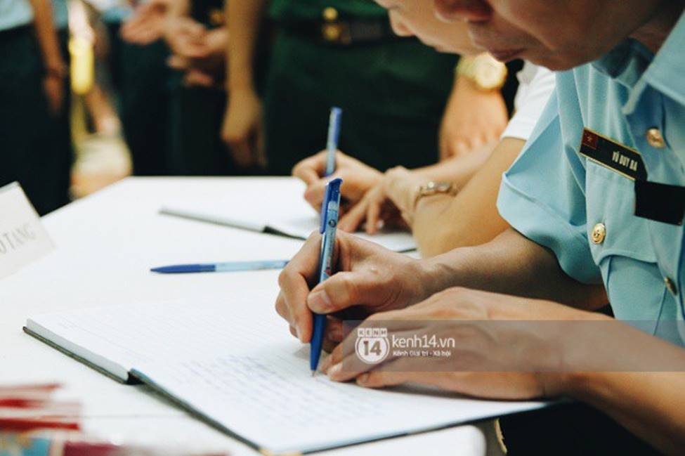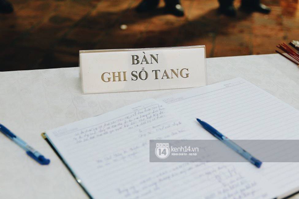 Bàn ghi số tang được đặt một góc để đồng đội, người thân viết cho anh những dòng cuối.