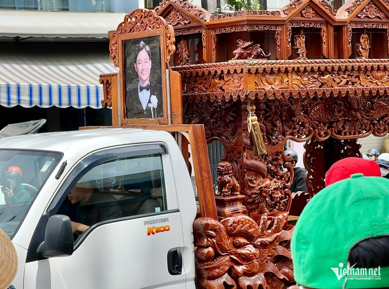 12h30, xe chở linh cữu của diễn viên Quý Bình di chuyển vào nhà tang lễ. Giữa xe treo di ảnh của anh với nụ cười hiền. Nhiều khán giả bật khóc dù không được vào trong tiễn biệt người nghệ sĩ mình yêu quý.