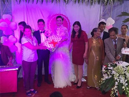 Họ hàng và bạn bè thay phiên nhau tặng quà cưới cho Lê Thúy. |