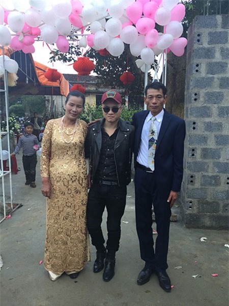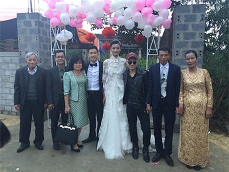 Nhà thiết kế Đỗ Mạnh Cường không quản ngại đường xá xa xôi đã về dự tiệc mừng của "nàng thơ" gắn bó với anh trong nhiều năm qua. Nhà thiết kế chụp ảnh thân thiết cùng gia đình hai họ nhà trai, nhà gái. |