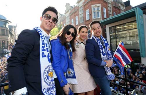 Phó chủ tịch Aiyawatt Srivaddhanaprabha (ngoài cùng bên phải) của Leicester bên các thành viên gia đình