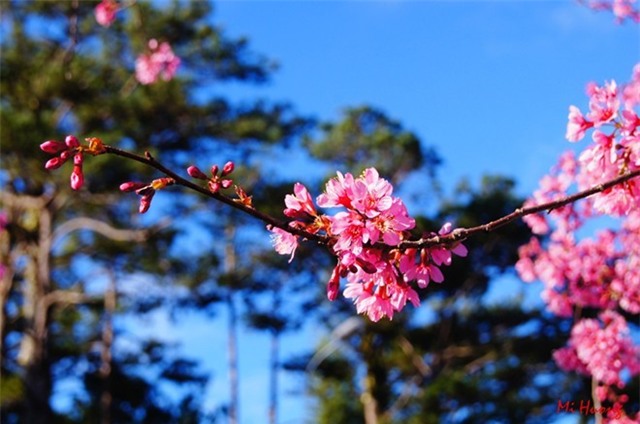 Cuối tháng 2, hoa mai anh đào nở rộ đường Hòa Bình (gần chợ Đà Lạt, đường Trần Hưng Đạo. Ảnh: Mi Hương. |