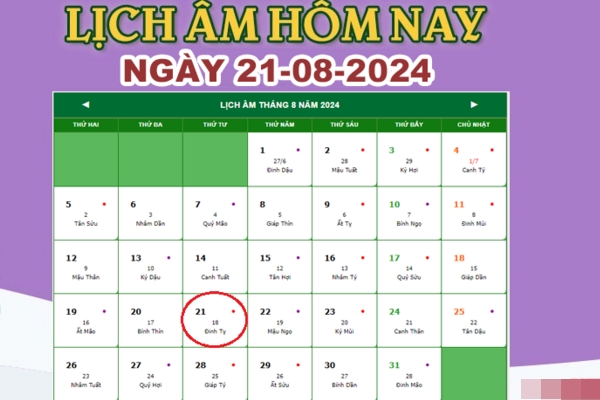 Xem lịch âm hôm nay ngày 22/8/2024