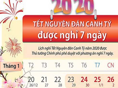 Chính thức ban hành lịch nghỉ Tết Nguyên đán Canh Tý 2020