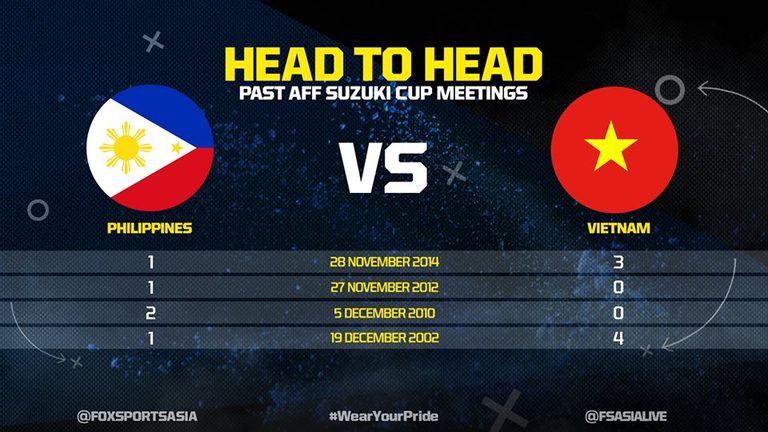 Sau 4 lần đối đầu với Philippines ở Tiger Cup/AFF Cup, ĐT Việt Nam sở hữu thành tích 2 thắng, 2 thua.