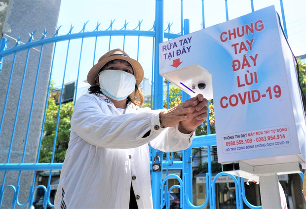 Người dân Đà Nẵng rửa tay sát khuẩn tại địa điểm công cộng.
