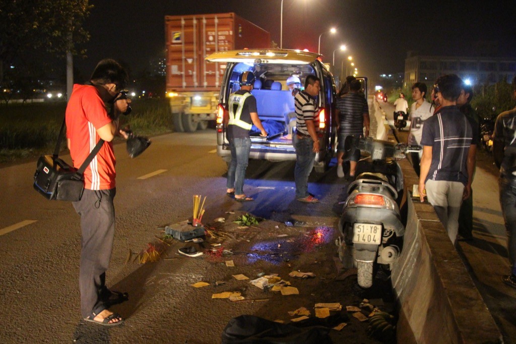 Tại hiện trường, thi thể nạn nhân nằm sát dải phân cách, chiếc xe máy bể nát, hư hỏng. Nhận tin báo, Công an quận 2 có mặt khám nghiệm hiện trường, khám nghiệm phương tiện liên quan để làm rõ nguyên nhân vụ tai nạn.