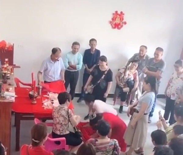 Mới đây, những hình ảnh ghi được tại một đám cưới ở Vũ Hán, Hồ Bắc, Trung Quốc đang gây xôn xao dư luận. Theo thông tin đăng tải, chỉ vì muốn nhận được thêm nhiều tiền mừng đám cưới, cô dâu chú rể đã phải cúi đầu lạy hơn 100 lần. Sau khi kết thúc, đầu gối cô dâu sưng đỏ, ngất xỉu, phải nằm trên ghế sô pha hồi sức.