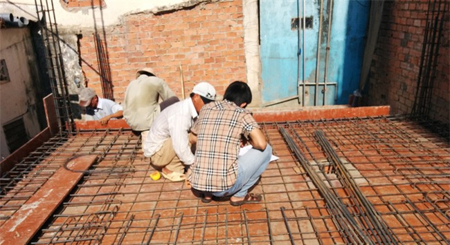 Anh D bàn bạc kỹ thuật với giám sát công trình