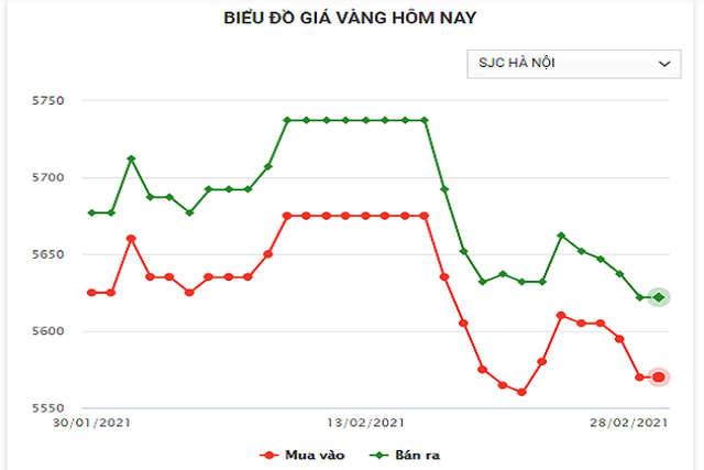 Điều đáng nói là mỗi doanh nghiệp niêm yết một giá khác nhau, chẳng hạn ngày 28/2, giá mua vàng miếng SJC niêm yết tại DOJI ở mức 55,55 triệu đồng/lượng, trong khi giá mua loại vàng này tại Công ty Bảo Tín Minh Châu ở mức 55,75 triệu đồng/lượng; giá mua vàng miếng SJC tại Phú Quý ở mức 55,7 triệu đồng/lượng…