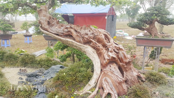 Do được trồng trên một cây gỗ sao lũa lớn, giống như một chiếc chậu nghệ thuật "khủng" càng tạo nên vẻ đẹp cho cây kiểng trên.