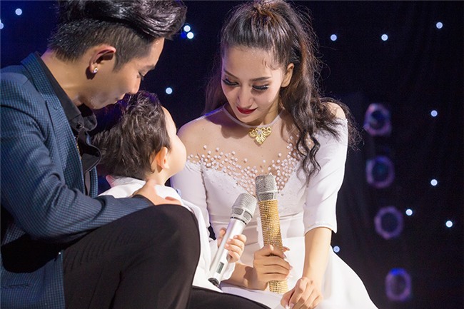 | Gia đình nhỏ của Khánh Thi trên sân khấu. |