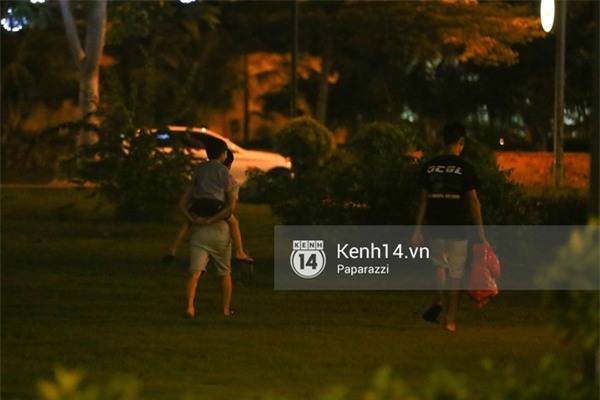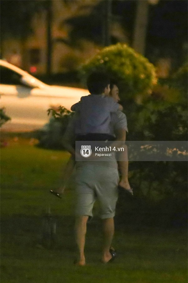 Sau khi đưa Subeo đi dạo và chơi trò chơi xong, Cường Đô la cõng con trai ra xe...