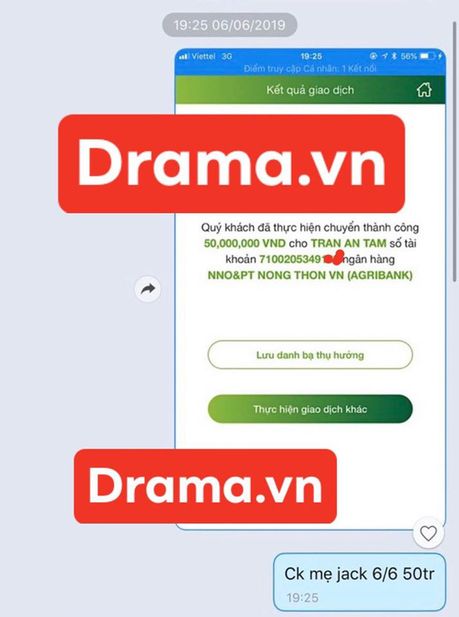 Những hình ảnh được cho là mẹ con K-ICM chuyển tiền cho mẹ ruột Jack.