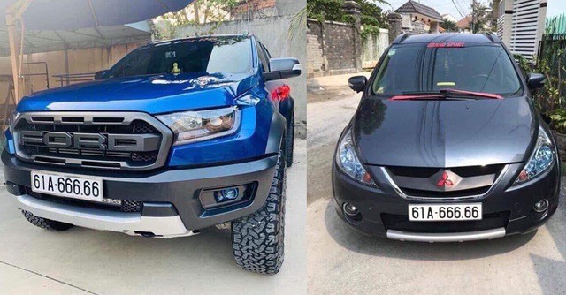 Ngay sau khi có thông tin về việc anh Ân bấm được biển số "siêu đẹp", trên mạng xã hội cũng xuất hiện 2 chiếc xe khác (1 xe bán tải nhãn hiệu Ford màu xanh và 1 xe ô tô 4 chỗ hãng Mitsubishi màu đen) cùng mang BKS ngũ quý 6: 61A-666.66.