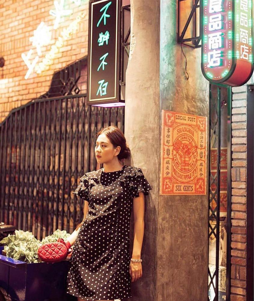 Chiếc váy chấm bi tay bèo nhí nhảnh khiến cho cô nàng trẻ ra vài tuổi.